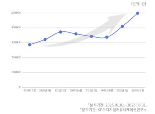 • 2025년 7월 이후 친환경 마케팅 언급량 40만 건 돌파, 8월 50만 건까지 상승